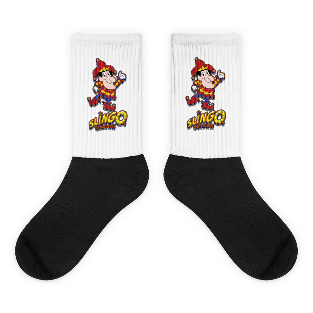 These socks are extra comfortable thanks to their cushioned bottom. The foot is black with artwork printed along the leg with crisp, bold colors that won’t fade.